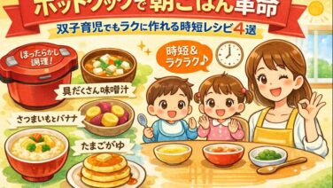 双子育児の朝は、とにかく時間との勝負。着替えさせて、食べさせて、機嫌を取りながら…気づけば自分の朝ごはんは後回し、なんて日も多いですよね。しかし、そんな毎朝を少しでもラクにしてくれるのがホットクックです。材料を入れてスイッチを押すだけで、火...