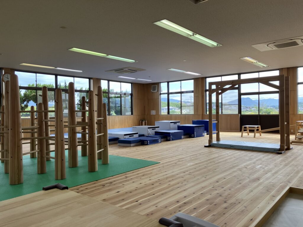 - 大きい子向けの遊具は奥に配置されていて、ジャンプマット・シンキング・ボルダリングなどが充実
